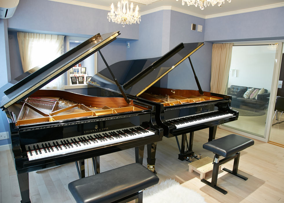 スタインウェイ(NY)M型と227cmの大型グランドピアノYAMAHA C7を2台、合計3台のピアノでレッスンをしています。もちろん、初めてのピアノレッスンのお子様も、この素晴らしいピアノでレッスンがスタートします。